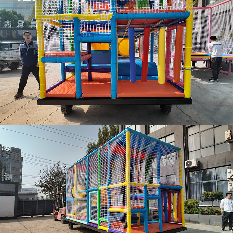 由汉林游乐设计生产的车载淘气堡已安装完毕,检验合格准备发往美国,先来看一下这款车载淘气堡都包含哪些游乐项目吧。麻雀虽小五脏俱全,这款车载淘气堡几乎包含了所有受欢迎的游乐项目,滑梯、蹦床、钻网、闯关等一应俱全。整个空间采用环保材质、安全软包设计,打造沉浸式游乐体验。